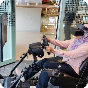A safety driving simulator is used to assess and train drivers, especially commercial and passenger transportation drivers, so that they better understand how to drive properly and safely for themselves and others.